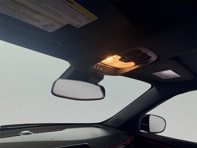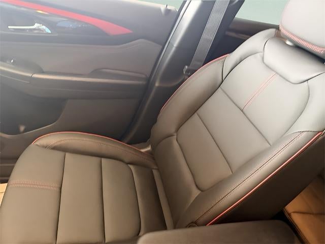 The cabin offers Jet Black upholstery with red accents, heated front seats, eight-way power driver's seat with lumbar support, heated flat-bottom leather-wrapped steering wheel, and rear center armrest. Additional amenities include dual-zone climate control, wireless charging, and 60/40 split-folding rear seats.