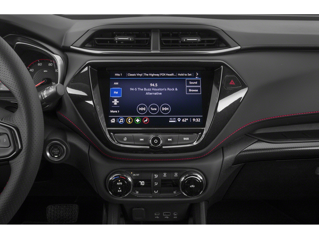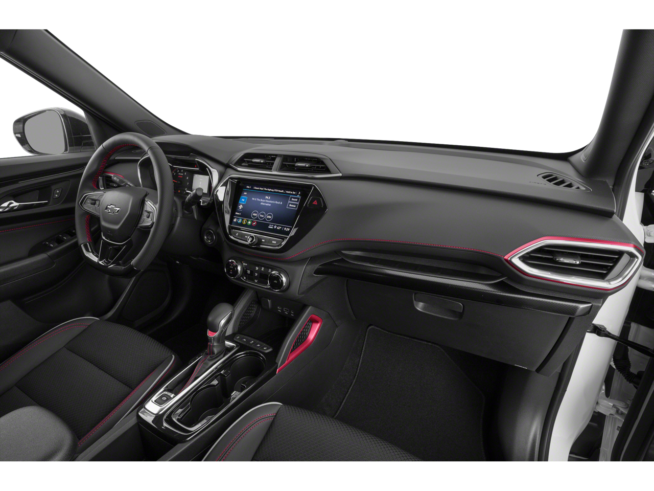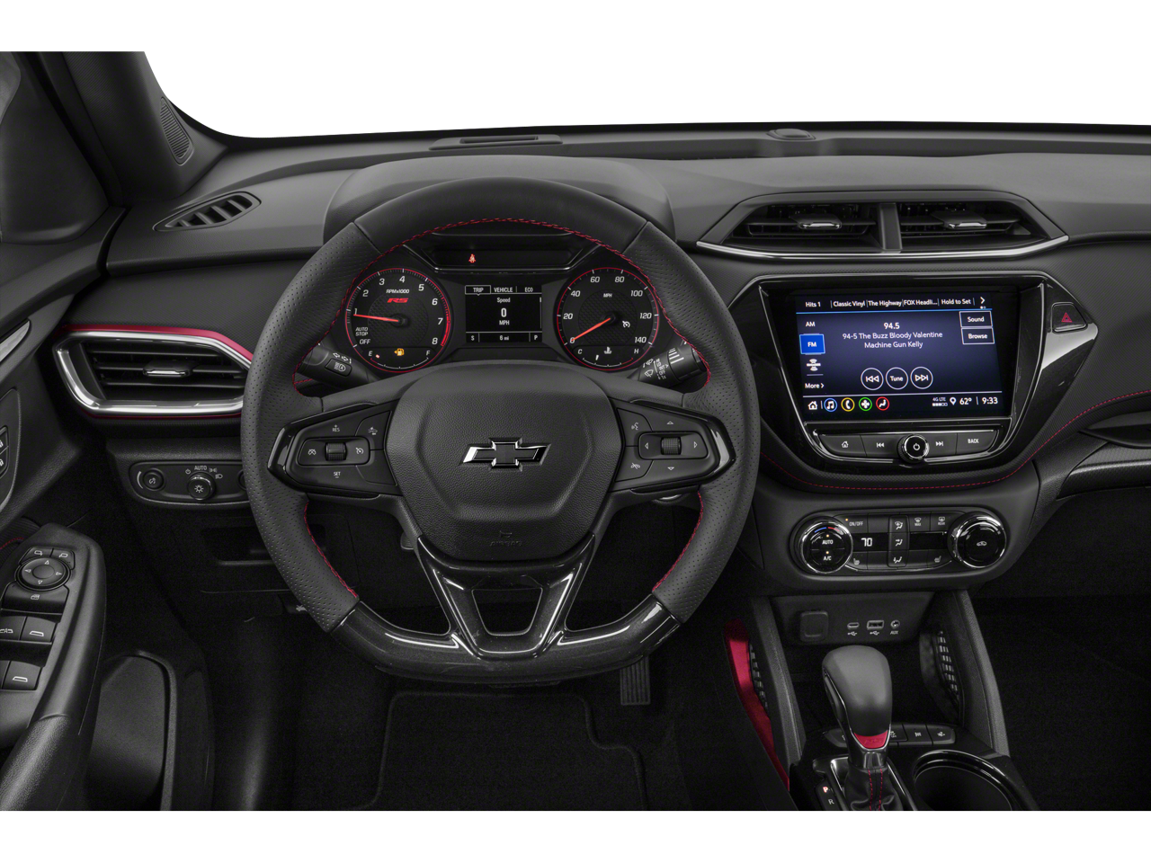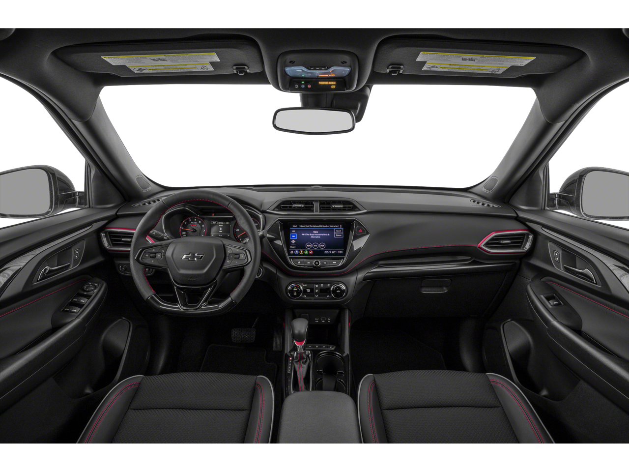 1 Type-A & 1 Type-C USB Charging-Only Ports, 120-Volt Power Outlet, 2-Way Power Driver Lumbar Seat Adjuster, 3.17 Axle Ratio, 4-Way Manual Front Passenger Seat Adjuster, 4-Wheel Disc Brakes, 6 Speakers, 6-Speaker Audio System Feature w/Amplifier, 8-Way Power Driver Seat Adjuster, 8 Diagonal Color Touchscreen Display, ABS brakes, Air Conditioning, Alloy wheels, AM/FM radio, Apple CarPlay/Android Auto, Auto High-beam Headlights, Brake assist, Bumpers: body-color, Cabin Humidity Sensor, Cloth w/Leatherette Seat Trim, Compass, Convenience Package, Delay-off headlights, Driver & Front Passenger Illuminated Vanity Mirrors, Driver Confidence Package, Driver door bin, Driver vanity mirror, Dual front impact airbags, Dual front side impact airbags, Dual-Pane Panoramic Power Sunroof, Electronic Stability Control, Emergency communication system: OnStar and Chevrolet connected services capable, Exterior Parking Camera Rear, Flat-Folding Front Passenger Seatback, Front anti-roll bar, Front Bucket Seats, Front Center Armrest, Front fog lights, Front License Plate Bracket, Front reading lights, Front wheel independent suspension, Fully automatic headlights, Hands-Free Power Programmable Liftgate, Heated door mirrors, Heated Driver & Front Passenger Seats, Heated front seats, Illuminated entry, Inside Rear-View Auto-Dimming Mirror, Knee airbag, Lane Change Alert w/Side Blind Zone Alert, Leather Shift Knob, Leather steering wheel, Low tire pressure warning, Mosaic Black Metallic Two-Tone Roof, Occupant sensing airbag, Overhead airbag, Overhead console, Panic alarm, Passenger door bin, Passenger vanity mirror, Power door mirrors, Power driver seat, Power steering, Power windows, Preferred Equipment Group 1RS, Radio data system, Radio: Chevrolet Infotainment 3 System, Rear Cross Traffic Alert, Rear Park Assist, Rear seat center armrest, Rear side impact airbag, Rear window defroster, Rear window wiper, Remote keyless entry, Ride & Handling Suspension, Roof rack: rails only, Security system, Single-Zone Auto Climate Control Air Conditioning, SiriusXM Radio, Speed control, Split folding rear seat, Spoiler, Steering wheel mounted audio controls, Sun & Liftgate Package, Tachometer, Telescoping steering wheel, Tilt steering wheel, Traction control, Trip computer, Variably intermittent wipers, Wheels: 18 High Gloss Black Machined Aluminum, Wireless Apple CarPlay/Android Auto.